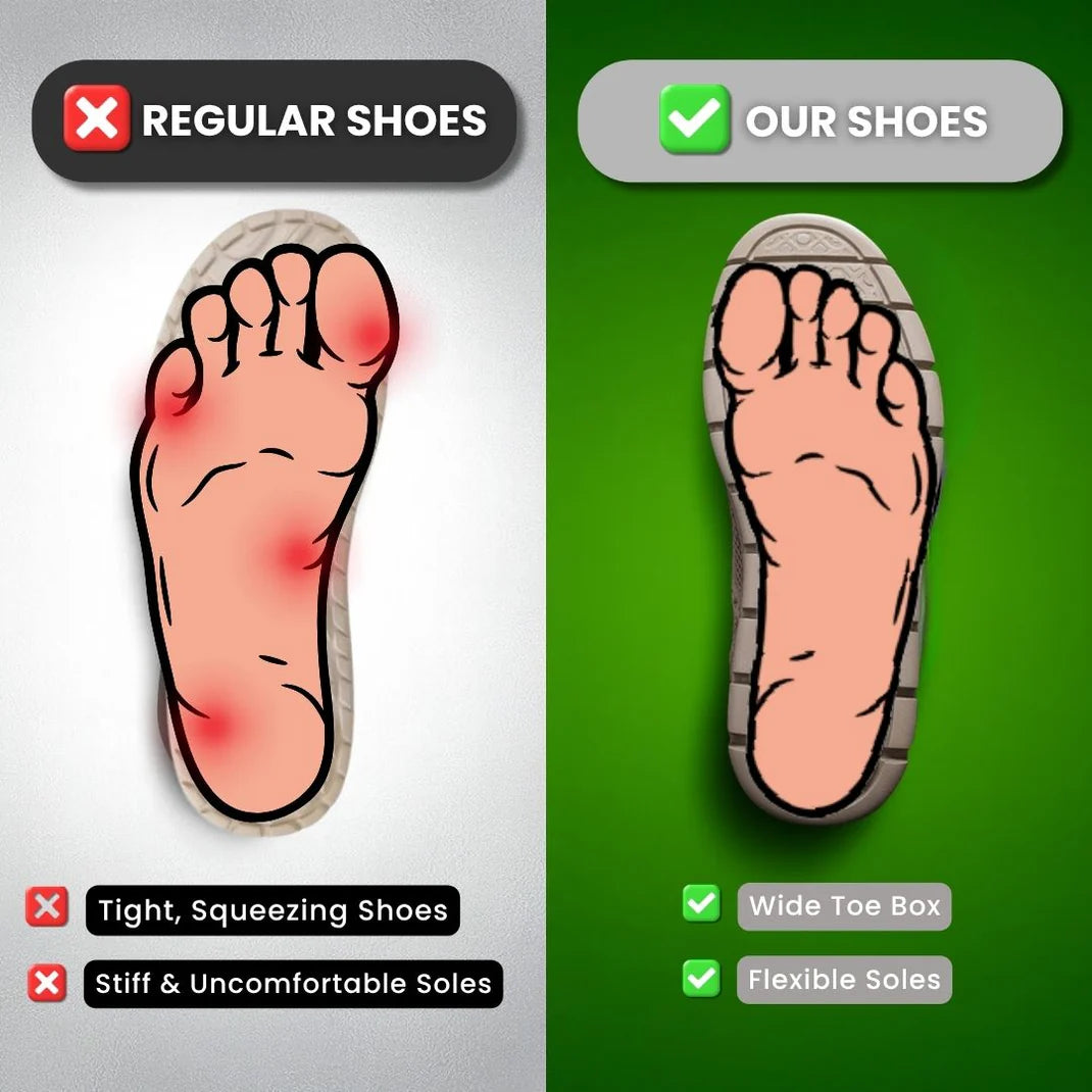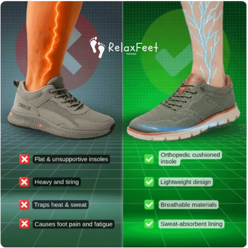 Tired of wearing stiff shoes that lack cushioning and leave your feet aching halfway through the day? RelaxFeet’s Ultra Comfortable Orthopedic Shoes are here to change that. With a wide toe box and superior orthopedic support, our shoes strike the perfect balance between style and comfort. No more foot pain—experience unmatched comfort all day long.