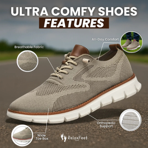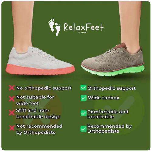 Tired of wearing stiff shoes that lack cushioning and leave your feet aching halfway through the day? RelaxFeet’s Ultra Comfortable Orthopedic Shoes are here to change that. With a wide toe box and superior orthopedic support, our shoes strike the perfect balance between style and comfort. No more foot pain—experience unmatched comfort all day long.